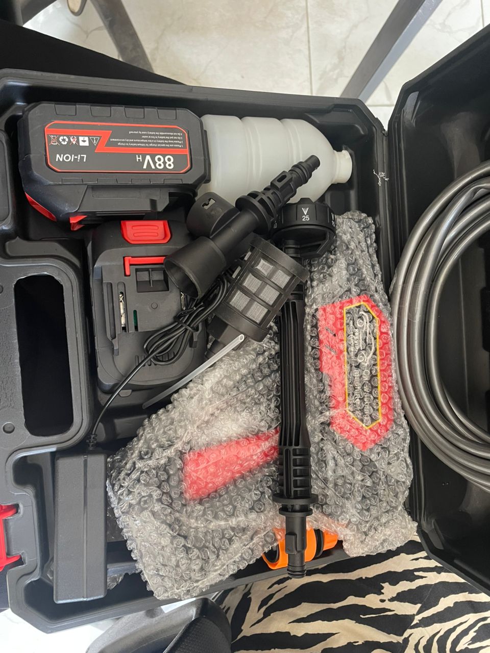 This high pressure washer is a cleaning machine that uses battery to pump water at very high pressure through a narrow nozzle.